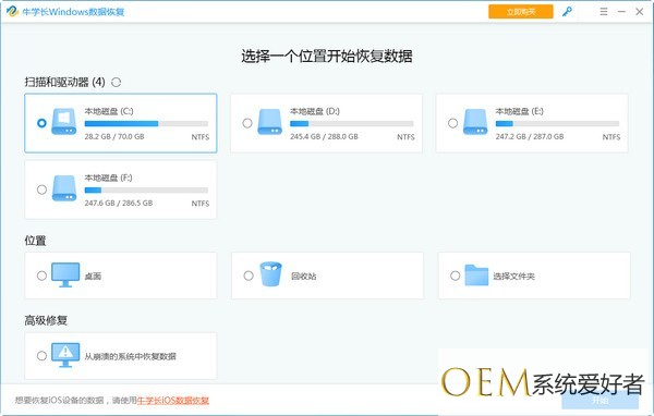 1、首先准备可正常使用电脑上,下载安装Windows数据恢复工具,选择点击从崩溃系统中恢复功能键,然后点击开始。