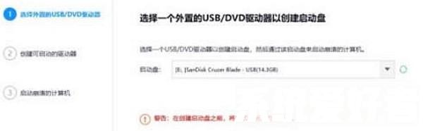 在创建启动盘之前,将格式化所选驱动器,会清除设备数据。