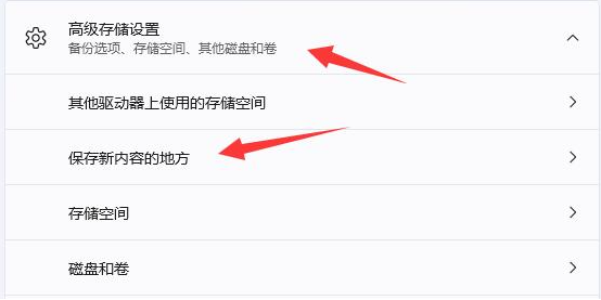 4、展开高级存储设置,然后选择“保存新内容的地方”。