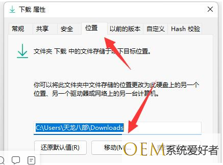2、点击“位置”项,选择“移动”就能更改默认下载路径了,这样文件就会保存到新设置的路径中了。