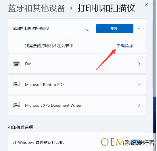 4、添加后出现我想要的打印机不在列表中的字样的话,点击手动添加。