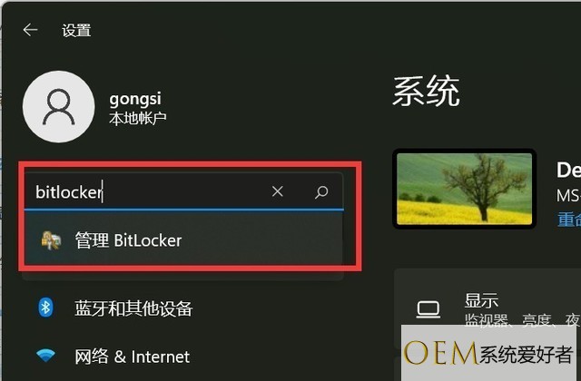 二、Windows 11操作系统或者没找到设备加密选项的话,可以直接在设置的搜索栏里输入Bitlocker进行搜索。可以直接进入到管理Bitlocker的页面当中。