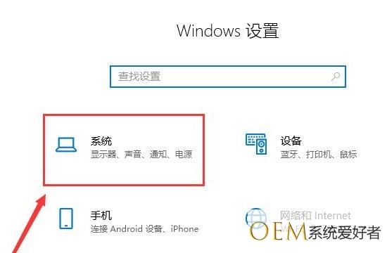 3、点击windows设置中的系统。