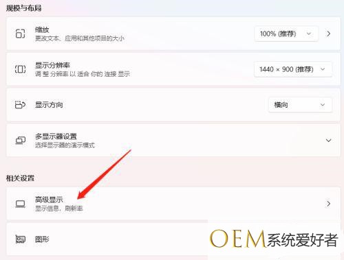 3、进入显示设置之后,点击高级显示。