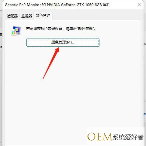 5、点击进入属性设置,点击颜色管理就可以校正啦。