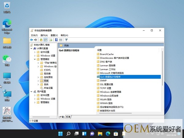 3、展开管理模板,并点击下面“Qos数据包计划程序”。