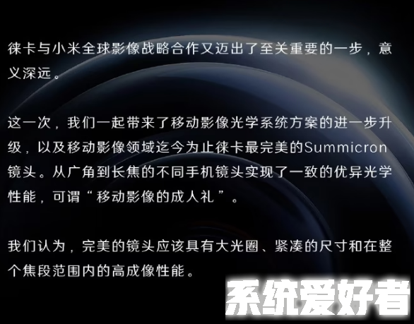 4月6日消息,徕卡官方微博宣布,由徕卡和小米联合研发的小米13 Ultra将在本月正式发布。这款手机备受期待,其中最引人注目的特点是其与徕卡合作研发的摄像系统和镜头。徕卡表示,小米13 Ultra是非凡的历史级作品,这次我们一起带来了移动影像光学系统方案的进一步升级以及移动影像领域迄今为止徕卡最完美的Summicron镜头。