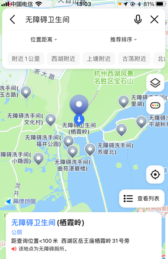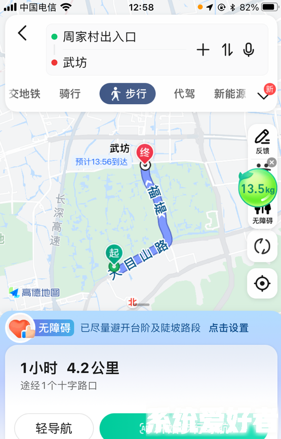 在这13个城市中,使用轮椅导航的用户只需在高德地图的设置选项中开启"无障碍导航",然后在使用步行导航时,系统会避开轮椅无法通行的路段,如地下通道和人行天桥,并结合无障碍电梯和升降机等设施,为用户规划出一条无障碍路线。此外,高德地图还致力于数字化更多城市中的无障碍设施,以方便更多残障人士查询使用。