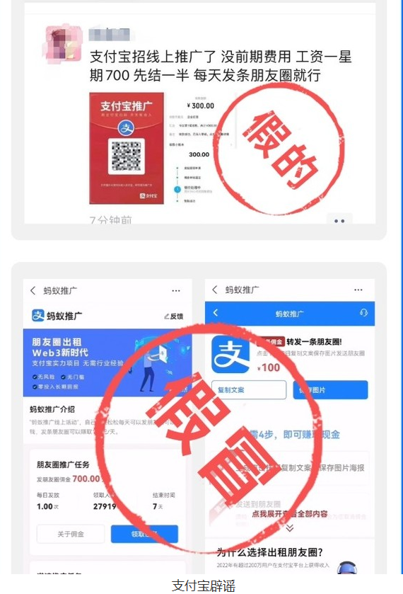 根据支付宝的表示,他们并没有推出名为“蚂蚁推广”或“支付宝推广”的项目,也不存在“朋友圈出租”等赚钱活动。这些活动都是诈骗行为。通过扫描二维码进入的网站都是诈骗团伙伪造的,他们模仿了微信、支付宝等平台的风格。在这些网站上的点击行为可能导致个人信息泄露或资产损失。支付宝开放平台正在与相关机构合作,全面打击黑灰产业链,保护用户和支付宝的合法权益。如果在朋友圈或微信群中看到有人发布此类广告,请转发本条信息,提醒亲友们不要上当受骗。