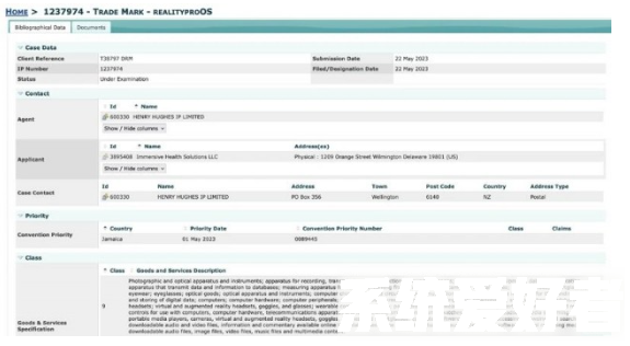 据最新资讯了解,苹果利用一家名为Immersive Health Solutions LLC的公司,于昨日在新西兰提交了名为“realityproOS”的商标申请。去年,该公司申请了对“Reality One”和“Reality Pro”等术语的商标保护,因此苹果可能会在首款头显中使用其中之一。