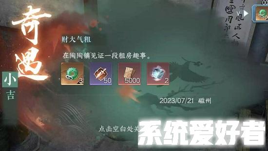 奇遇奖励:3点剧情点,50点风云令,3个绑玉和“小册子”