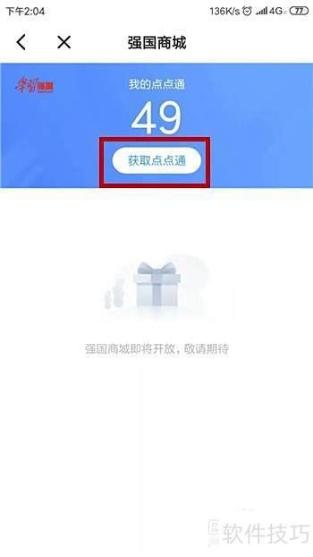 - 进入强国商城后,点击获得点点通即可开启相关功能。