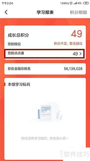 - 进入学习强国,打开学习报表页面,点击您的点点通即可查看,操作步骤所示。